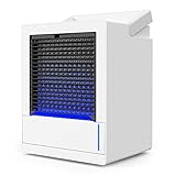 冷風扇 卓上冷風機 Lifeholder ミニエアコンファン 冷風と自然風 風量3段階 暖色常夜灯と七色雰囲気灯 低騒音 ハンドル付き 持ち運び便利 加湿 冷却 熱中症と暑さ対策 オフィス/台所/寝室/居間用 小型クーラー扇風機 ホワイト